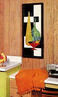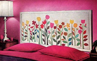 When I saw it I immediately thought of my new favorite old craft book…BH&G Stitchery and Crafts because of this floral appliqued headboard and mosaic wallhanging.