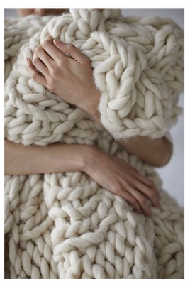Trend savvy Anthropolgie got in on the look last fall with the Colossal Knit Throw (above and below, for scale!)
