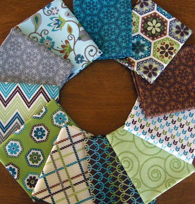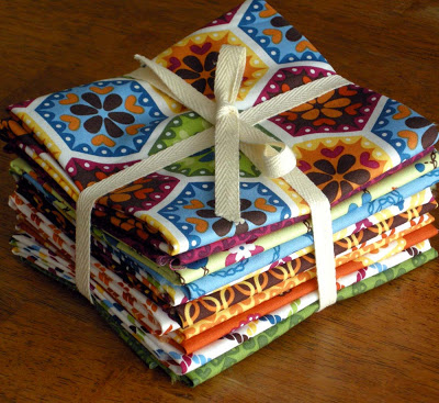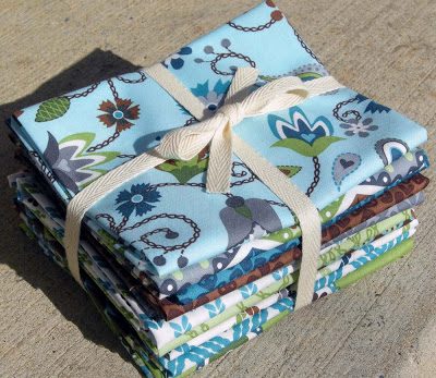 As of now, I am offering Fat Quarter Bundles in my etsy shop! There are 2 sets of 11 fabrics, divided by colorways, Garden and Lagoon.