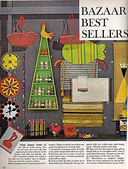 Check out the Bazaar Best Sellers. I’m sure you’ll get some great ideas for your next craft fair. Let’s see, there’s the long legged rooster spice rack with coordinating egg cozy. (click photos to see larger)