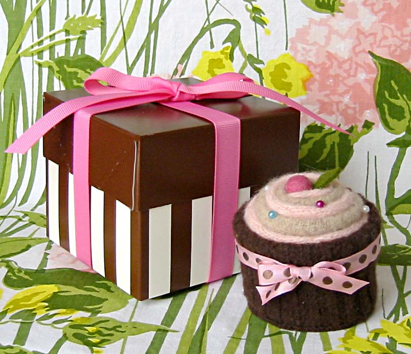 I’m offering these as a new Mother’s Day Special Edition! A slight twist on my classic cupcake, these are trimmed with sweet pink and brown polka dot ribbon tied in a bow.
