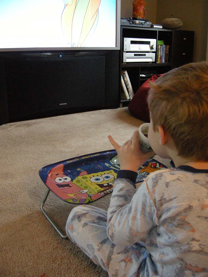 (yeah, he’s a TV-watching, cocoa drinking, inside-out jammie wearer…but look at that pinky extension! That kid has manners)