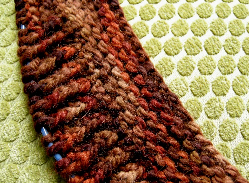Good golly this yarn is delicious. If I could eat it, I bet it would taste like cinnamon or nutmeg or curry or hazelnut or maybe all of them mixed together somehow. It is called Esperanza from Schaefer Yarn, color: Julia Child. Hmmm, no wonder the color reminds me of flavors! I’m knitting in the evenings while my husband and I catch up on old episodes of LOST on Hulu. That show is like a drug, I had no idea! Hope it doesn’t screw up my gauge, sometimes those shows make me tense. We are only part way through season 2, so don’t tell me anything! No spoilers, please!